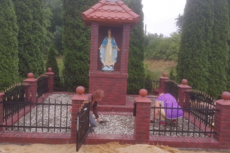 W dniu 28 lipca 2016 roku pas ziemi okalający nowopowstałą przydrożną figurę - wysypano kamieniem granitowym. To już ostatni zakres prac związanych z wybudowaniem obiektu sakralnego wraz z ogrodzeniem, który powstał w miejscu starej, zniszczonej przez upływ czasu przydrożnej figurki.