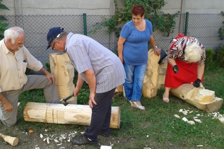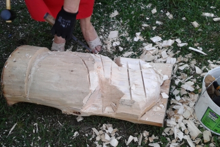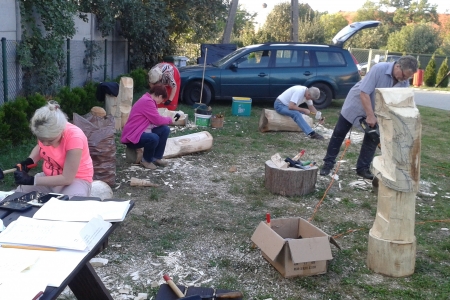 Dziś w kolejnym dniu trwania warsztatów spotkały się dwie grupy dzieci i dorosłych. Dzieciaki powoli kończą swój udział, bo i wakacje się kończą. Czas do szkoły, kto nie skończy może jeszcze rzeźbić na zajęciach z dorosłymi do 15 września. A dorośli ? jakoś dają radę mają jeszcze wiele do zrobienia. Niektórym wychodzi całkiem nieżle sam Marian zdziwiony takie talenty....