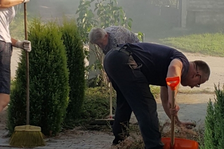 W dniu 24 sierpnia br. grupa mieszkańców Duchowa zebrała się przy świetlicy wiejskiej, aby w ramach pracy społecznej,wykonać prace porządkowe w otoczeniu świetlicy.