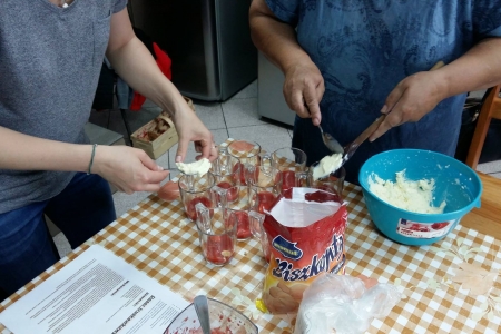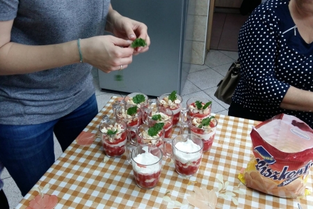 13.06.2016 w świetlicy znów było smacznie, tym razem za sprawą truskawek. Truskawkowy sezon w pełni, więc warsztaty musiały być koniecznie truskawkowe. Wykonałyśmy knedle z truskawkami, według przepisu pani Anny Kulka oraz deser truskawkowy znaleziony w internecie - a w nim truskawki, biszkopty, serek mascarpone, biała czekolada i oczywiście bita śmietana, a wszystko to ułożone warstwowo - udekorowane truskawkami i listkami mięty - jak to na ziołową wioskę przystało. Kalorii nikt już wczoraj nie liczył i na wagę nikt nie miał odwagi wejść :) W tzw. między czasie dziewczyny przygotowały paluchy ziołowe na czwartkowe podsumowanie projektu "Tu mieszkam tu zmieniam". Teraz przed nami przerwa wakacyjna, kolejne warsztaty we wrześniu - pomysł już jest rolada ze szpinakiem i łososiem w wykonaniu pani Zeni Plaskacz.