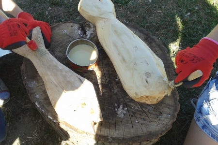 Dzieci swoje prace dziś szlifowały i malowały lakierem. Podziękowały też swemu nauczycielowi Marianowi Skowron za naukę i wprowadzenie najmłodszych w tajniki rzeźbienia.