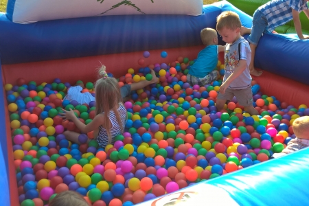 Atrakcją dla dzieci były zamki dmuchane, a dorośli rozegrali mecz siatkówki na nowym boisku.