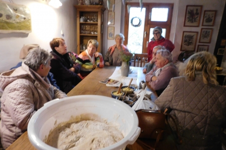 W czwartek 13 października 30 osobowa grupa członków UTW z Milicza uczestniczyła w zorganizowanej przez Stowarzyszenie „Duchowa Kraina” z Duchowa w Ścieżce edukacyjnej „Od ziarenka do bochenka”. Uczestnicy próbowali sił w sianiu zboża, koszeniu sierpem lub kosą, młóceniu cepem, mieleniu ziarna oraz wypieku racuchów z pozyskanej mąki. W drugim etapie wycieczka udała się do Gospodarstwa Rogata Owca – Pani Beaty Piekarskiej w Lędzinie. W izbie przy rozpalonym kominku ustawiony był długi stół, na którym prezentowały się dżemy domowe, masło i miód. Końcowym etapem były bułaczeki wypieczone w piecu chlebowym i degustowanez w/w delicjami.