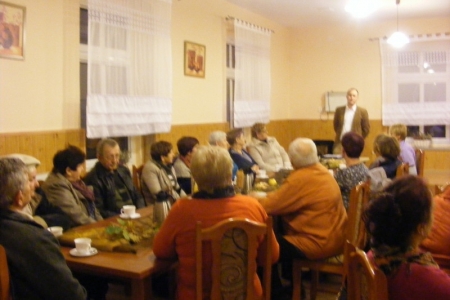 W ramach projektu pn."Białe podwieczorki" odbyło się I spotkanie z lekarzem Tomaszem Hołowatym. Poświęcone było cukrzycy i jej zapobieganiu oraz walce z bólem. Mieszkańcy z uwagą sluchali prelekcji a po jej zakończeniu zadawali pytania i prowadzili rozmowy indywidualne.W międzyczasie chętni mogli skorzystać z pomiaru poziomu cukru i ciśnienia tętniczego , które przeprowadzała pielęgniarka Justyna Frankiewicz.