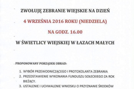 4 października odbyło się zebranie wiejskie, którego głównym tematem było ustalenie wydatkowania funduszu sołeckiego na rok 2017. Mieszkańcy ustalili następujący podział funduszu, wybierając 6 zadań do realizacji: