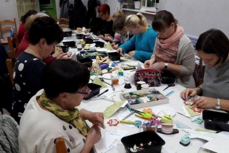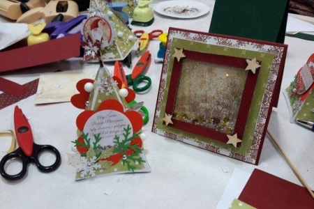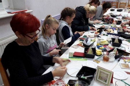 W piątek odbyły się w świetlicy w Łazach Małych warsztaty z tworzenia kartek świątecznych. Wzięło w nich udział 12 osób, zarówno dorośli jak i dzieci. Każdy uczestnik wykonał 2 kartki. Jedną stojącą w kształcie choinki oraz drugą z okienkiem tzw. shaker-box. Wszyscy świetnie się bawili przez trzy godziny i zadowoleni wrócili do domów, oczywiście że swoimi pracami. Warsztaty poprowadziła prezes Stowarzyszenia Aktywne Łazy - Izabela Chaszczewicz