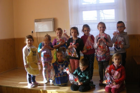 Dzisiejszy II dzień ferii zimowych upłynął pod hasłem "Walentynki u Czerwonego Kapturka". Uczestnicy, podzieleni na 2 grupy, piekli i ozdabiali walentynkowe ciasteczka.Pomagały im w tym panie: Monika Płaszczyk, Gosia Rajkiewicz i Iwona Cierniejewska.