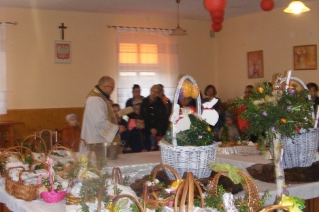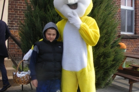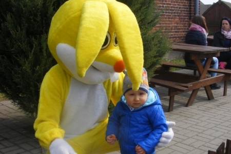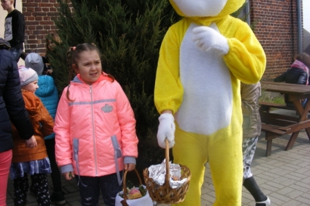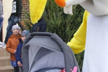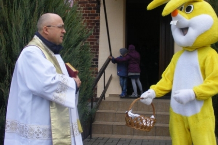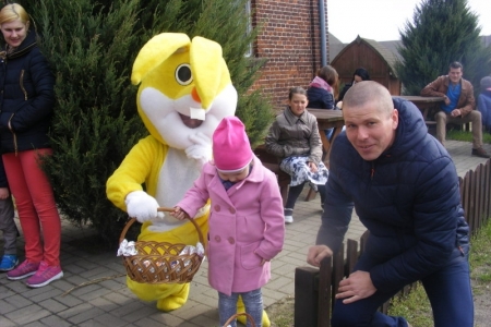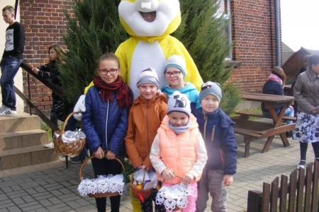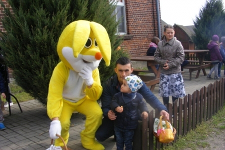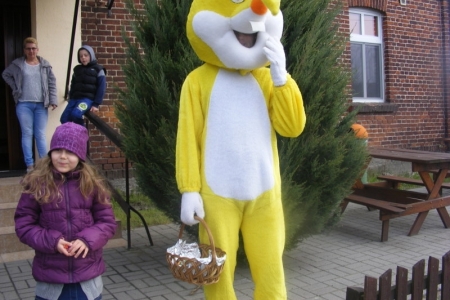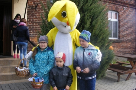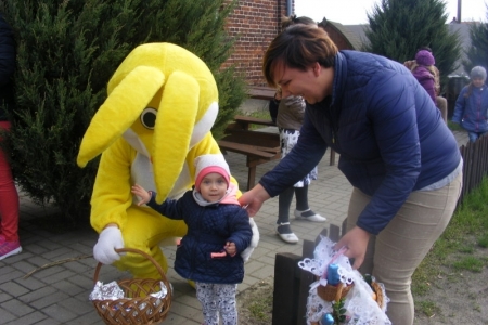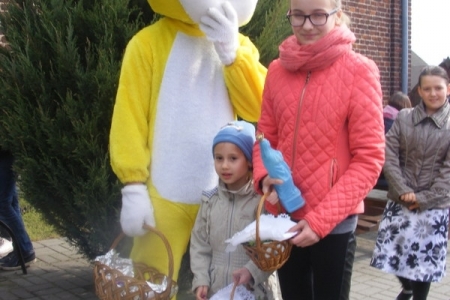Na każdego mieszkańca, który przyniósł do poświęcenia swój koszyczek z wielkanocnymi potrawami , czekał świąteczny zajączek. Wszystkim składał życzenia i częstował cukierkami. Pozował z chętnymi do pamiątkowego zdjęcia.