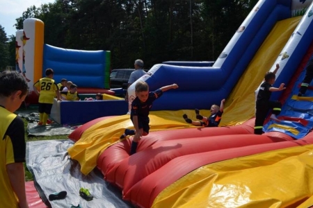 Impreza rozpoczęła się od Turnieju Łazy Mini Cup o godz. 14.00. W turnieju wzięło udział 120 dzieciaków z Akademii Piłkarskiej Free Kids oddział Bukowice i Zawonia oraz sekcja piłkarska Bona Fide Krośnice. Dzieci w wieku 5 - 13 lat, zostały podzielone na trzy grupy wiekowe: skrzaty, orlik i młodzik. Wszyscy uczestnicy otrzymali pamiątkowe medale, a drużyny dyplom, nie przyznawaliśmy miejsc - wszystkie drużyny zajęły pierwsze miejsce! Na organizację turnieju pieniądze zostały pozyskane przez Stowarzyszenie Aktywne Łazy w ramach Konkursu ofert na sport w Gminie Krośnice. W trakcie turnieju, i po nim dzieci mogły skorzystac z innych atrakcji - zamków dmuchanych, zabaw z animatorem, puszczania baniek mydlanych, strzelania z łuku, darmowego poczęstunku.