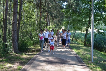 Następnym przystankiem w naszej wycieczce był Antonin. Pogoda dopisała, więc część osób skorzystała z kąpieliska i plaży przy akwenie Szperek. Kto słońca nie lubi wybrał się na zwiedzanie okolicy - Pałac Myśliwski Książąt Radziwiłłów, gdzie można było zjeść dobre lody lub wypić kawę, albo się posilić. Skosztowaliśmy również lokalnych ryb, w smażalni obok akwenu.