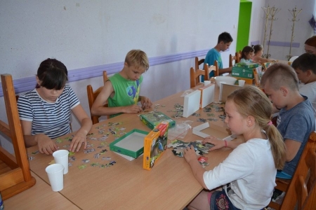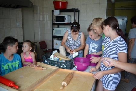 Zajęcia rozpoczęły się od wspólnego pieczenia kruchych ciasteczek. Wszyscy chętnie włączyli się do pracy: mieszali składniki, wygniatali ciasto, a następnie wykrawali ciasteczka o różnych kształtach. Gdy ciasteczka znalazły się w piekarniku, dzieci przystąpiły do zabawy grami ziołowymi. Najpierw szukały ziołowych par, w wykonanym przez nas ziołowym memory. Następnie bawiliśmy się ziołowym domino obrazkowym, a później upiekły się ciasteczka, więc dzieci przystąpiły do zajadania się swoimi wypiekami. Gdy już wszyscy się posilili, w ruch poszły puzzle z Doliny Baryczy. Każde dziecko otrzymało swoje zwierzątko do złożenia w zależności od wieku były puzzle łatwiejsze i trudniejsze. Gdy już wszyscy uporali się z puzzlami, wyszliśmy na dwór, aby puszczać ogromne bańki mydlane. Na zakończenie każde dziecko otrzymało balonik "Działaj Lokalnie" i zadowolone wróciły do domów. Przedstawicielki Stowarzyszenia również wróciły zadowolone do domów, bo wykonane przez nie gry przypadły dzieciom do gustu.