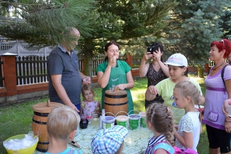 Pierwszym punktem naszego wyjazdu było Gospodarstwo Rolne Kiszonki Michał Sznajder. Mieliśmy możliwość obejrzenia gospodarstwa, jak funkcjonuje i jak wytwarza kiszonki. Zostaliśmy również zaproszeni na warsztaty, na których własnoręcznie wykonaliśmy kiszone buraczki. Było próbowanie produktów soku z kiszonej kapysty i buraczków, kiszonej kapysty w całościi szatkowanej, buraczków, ogórków oraz patisonów. Wszystko było smaczne, a spotkanie odbyło się w miłej atmosferze.