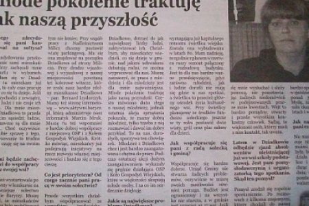 WYWIAD Z PANIĄ SOŁTYS PRZEPROWADZIŁA PANI BEATA IWASZKIEWICZ-BUGAJSKA DLA TYGODNIKA MILICKIEGO. ARTYKUŁ UKAZAŁ SIĘ 29 KWIETNIA 2011 ROKU.