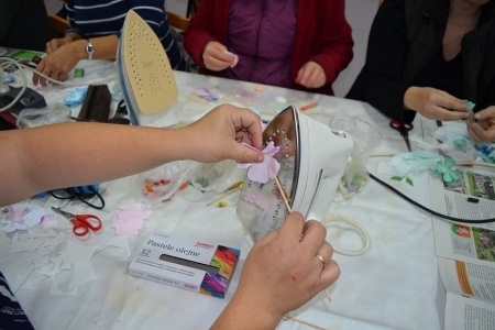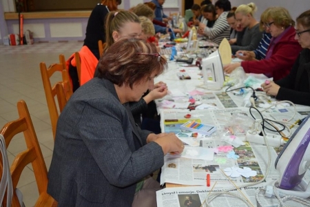 W piątek 29.09.2017 r. odbyły się kolejne warsztaty w ramach projektu "Ucz się bawiąc, jedz zdrowo i twórz kreatywnie w zielarskiej wiosce Łazy". W tym dniu było w naszej świetlicy bardzo kwieciście, a to za sprawą naszych warsztatów ,na których panie uczyły się wykonywać kwiaty z foamiranu - czyli takiej specjalnej pianki, z której pod wpływem nagrzania i odpowiedniego uformowania można stworzyć kwiaty wyglądające niczym prawdziwe. Uczestniczki uczyły się pod czujnym okiem pań: Małgorzaty Borkowskiej i Marii Gradzik. Bardzo dziękuję tym paniom za pomoc