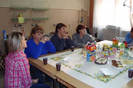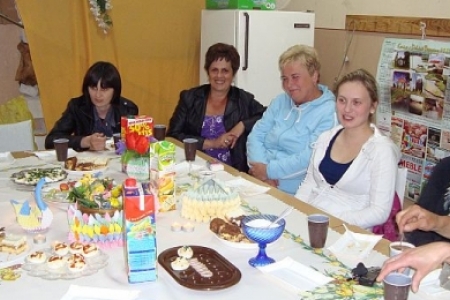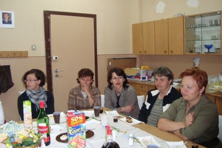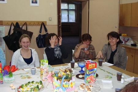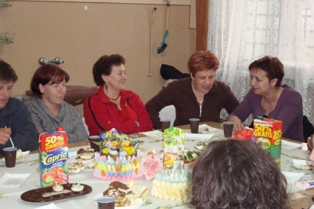 Przyszedł czas na przywitanie ,więc pani sołtys oraz pani przewodnicząca złożyły wszystkim obecnym życzenia , które odwzajemniły,podzieliłyśmy się jajeczkiem.Czas upłyną w miłej atmosferze.Były wspomnienia z lat młodzieńczych oraz żarty ,którym nie było końca.