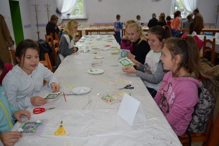 We wtorek 10 października odwiedziła nas pierwsza grupa uczniów klas 4 i 6 ze Szkoły w Kuźnicy Czeszyckiej, w ramach projektu "Ucz się bawiąc, jedz zdrowo i twórz kreatywnie w zielarskiej wiosce Łazy". Wspólnie wykonaliśmy kartkę okolicznościową z shakerem, graliśmy w ziołowe memory i obrazkowe domino ziołowe. Dzieci były bardzo zadowolone i pytały kiedy będą znów mogły przyjechać :)