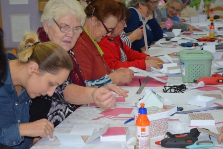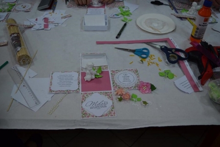 W piątek 20 października odbyły się przedostatnie warsztaty w ramach projektu "Ucz się bawiąc, jedz zdrowo i twórz kreatywnie w zielarskiej wiosce Łazy"z konkursu grantowego Działaj Lokalnie. Uczestniczki wykonały tzw. eksploding boxy" czyli pudełeczka, które po ściągnięciu pokrywki rozkładają się. Pudełeczka były okolicznościowe na urodziny, imieniny, ślub czy chrzest...
