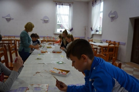 25 października do południa byli w świetlicy w Łazach Małych uczniowie klasy 4 ze Szkoły w Krośnicach. W tym dniu odbyły się warsztaty artystyczne na których dzieci wykonały kartki okolicznościowe z motywem roślinnym oraz z shakerem czyli szeleszczącym okienkiem, a także ziołowe gry - domino i memory oraz puzzle z Doliny Baryczy. Warsztaty odbyły się w ramach projektu "Ucz się bawiąc, jedz zdrowo i twórz kreatywnie w zielarskiej wiosce Łazy”