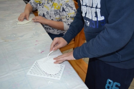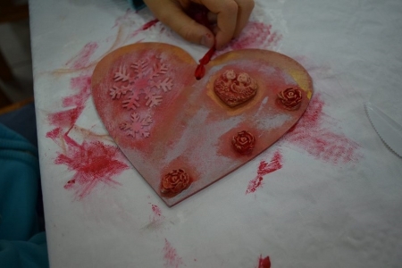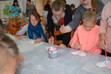 27 października gościła u nas już ostatnia grupa uczniów w ramach projektu "Ucz się bawiąc, jedz zdrowo i twórz kreatywnie w zielarskiej wiosce Łazy". Klasy 6 ze Szkoły Podstawowej w Bukowicach uczestniczyły w warsztatach polegających na zdobieniu elementów dekoracyjnych (serce zawieszka) wyciskami z masy plastycznej oraz nakładania struktury pastą za pomocą szablonu, a także malowanie tego wszystkiego farbami akrylowymi, cieniowania, metody tzw. suchego pędzla oraz zdobienia pastami pozłotniczymi. Przy okazji okazało się kto sobie sam w domu kanapki robi i potrafi smarować pastą tak jak chleb masłem ;) Choć wszystkie serca były tworzone według jednego schematu, okazało się że w naszych młodych gościach drzemie artystyczna dusza i każda zawieszka jest jedyna w swoim rodzaju i niepowtarzalna :)