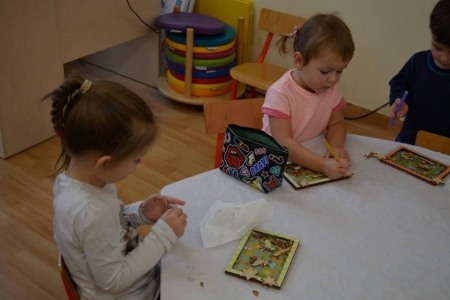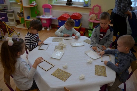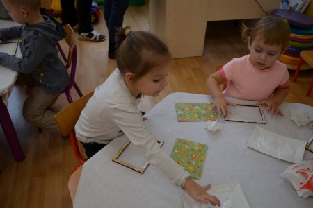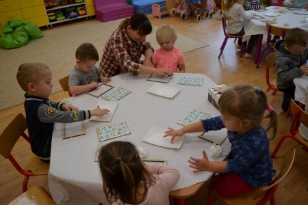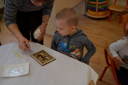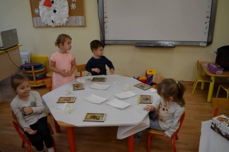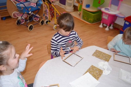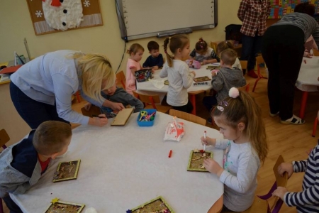 We wtorek prowadziliśmy warsztaty w grupie 0c w Przedszkolu w Bukowicach. Maluchy 3 i 4-letnie świetnie poradziły sobie z wykonaniem zimowego obrazka z shakerem