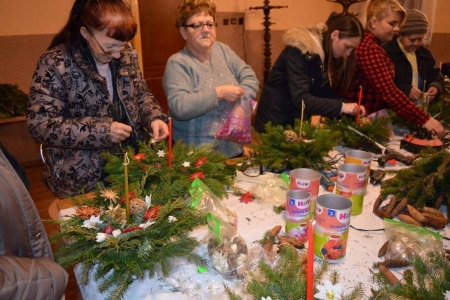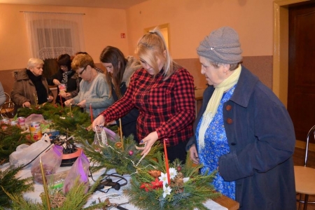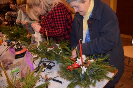 A we wtorek po południu odbyły się warsztaty w Suliradzicach, gdzie panie wykonały stroiki świąteczne.