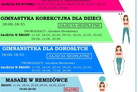 Zajęcia są płatne, odbywać się będą w remizówce .Poprowadzi je p.J. Bienkiewicz. Wymagany ręcznik