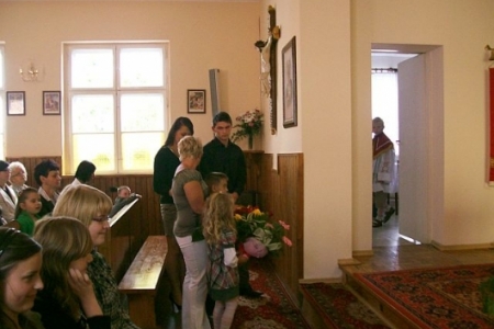 W niedzielę 29 maja w naszej nowo wyremontowanej Kaplicy w Dziadkowie obchodziliśmy 15-stą rocznicę święceń kapłańskich naszego proboszcza Krzysztofa Tomczaka. Parafianie z Dziadkowa, Rakłowic i Grzebielina z tej okazji złożyli księdzu życzenia, obdarowali go pięknymi bukietami kwiatów oraz złożyli mu w darze trzy piękne ornaty, albe, komże, bieliznę kielichową, welon, obrusy. Ksiądz proboszcz nie ukrywał radości z otrzymanych prezentów, mówiąc '' to znaczy że dbacie o swojego proboszcza i chcecie żeby dobrze wyglądał ". Pod koniec mszy z uśmiechem na ustach składał podziękowania dla parafian, sponsorów i ludzi dobrej woli którzy przyłożyli się do odnowienia i wysprzatania naszej kaplicy.