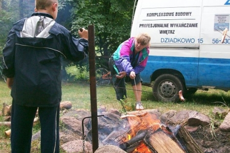 W trakcie wycieczki nie obyło się bez śpiewów dzieci i rodziców. „Szła dzieweczka” czy „Stokrotka”. O o o ognisko cieszą się dzieci jesteśmy, ognisko rozpalone było dzięki panu radnemu z Dziadkowa który również przygotował kijki na kiełbaskę. Dzieci z radością usiedły wokół ogniska, odpoczywając piekli sobie kiełbaski. Nie zabrakło na stołach chleb napoi i słodyczy.