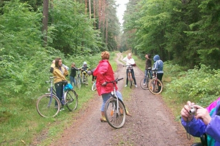Ruszyć było ciężko i nie obyło się bez awarii roweru. Jakkolwiek I na to byliśmy przygotowani, wykonaliśmy telefon do pana Roberta i przyjechał zabrał rower do busa. Nasz szlak rowerowy prowadził w stronę Godnowej i odbiliśmy ku stawą Rakłowickich.