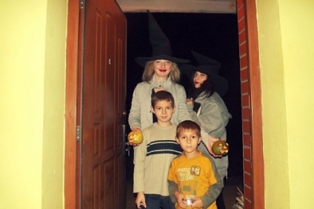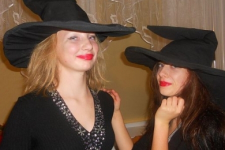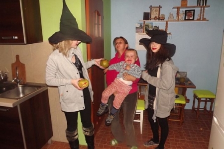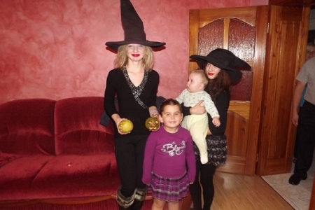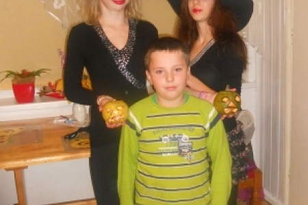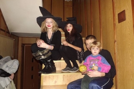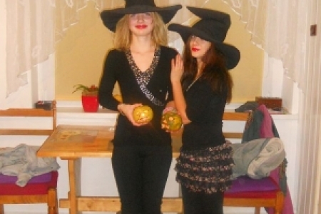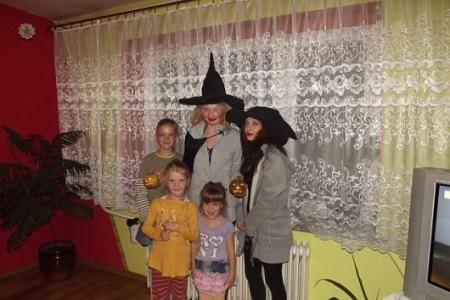 DZIEWCZĘTA, SANDRA PRZYBYLSKA, KLAUDIA FASSA, ODWIEDZAŁY NASZE DOMOSTWA, W PIĘKNYCH STROJACH HALLOWEEN. DZIECI BARDZO SIĘ CIESZYŁY.