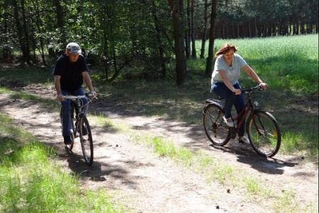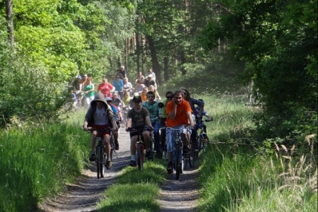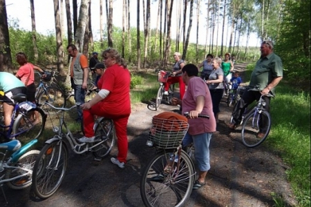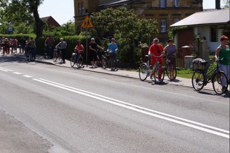MAMY SOBOTE, SŁONECZNE POPOŁUDNIE. W CETRUM SOŁECTWA GROMADZĄ SIĘ MIESZKACY NA RAJ ROWEROWY, KTóRY ZOSTAŁ ZORGANIZOWANY PRZEZ PANIĄ SOŁTYS I CZŁONKóW RADY SOŁECKIEJ ORAZ KORDYNATORA JANKA SZYMAŃSKIEGO.