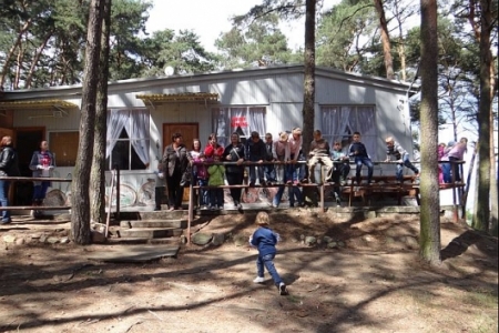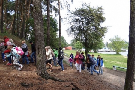 KOLEJNYM ETAPEM WYCIECZKI MIAŁ BYĆ REJS JACHTEM PANA SLIWICKIEGO PO JEZIORZE POWIDZKIM. Z PRZYCZYN POGODOWYCH REJS ZOSTAŁ ODWOŁANY. NIEZNOŚNY WIATR NIE PRZESZKODZIŁ NAM W SPACERZE BRZEGIEM JEZIORA.