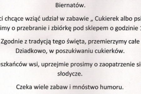 MIESZKAŃCóW WSI, UPRZEJMIE PROSIMY O ZAOPATRZENIE SIĘ W SŁODYCZE.