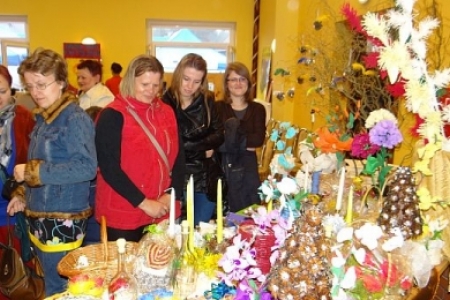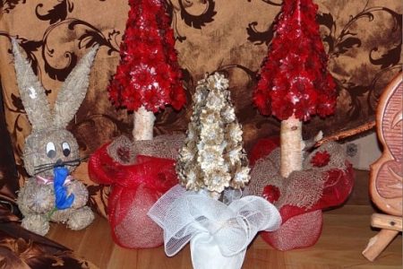 Grupa mieszkańców Dziadkowa wystawiła swoje ręcznie wykonane z naturalnego materiału ozdoby leśńe.