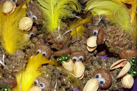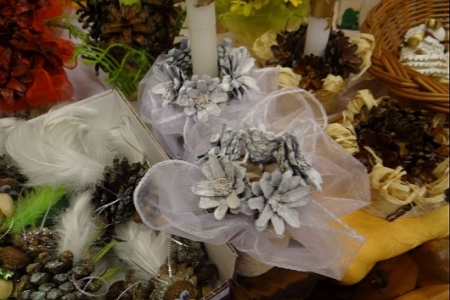 z szyszki - ptaszki, misie, bałwany, świeczniki, drzewka.