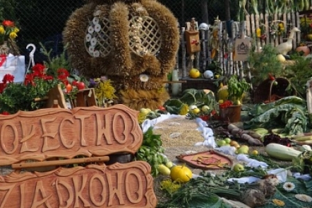 Dożynkom pogoda dopisała a my od rana po ogrodach chodziliśmy i plony rolne zbieraliśmy by piękną wystawę zrobić i do Cieszkowa na święto plonów zawieź.