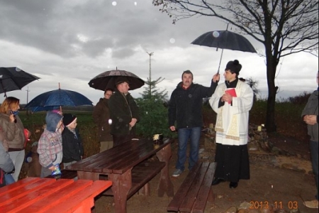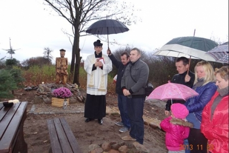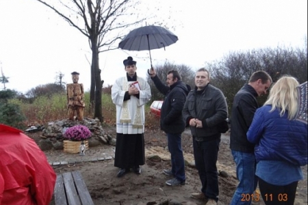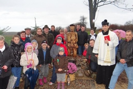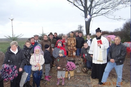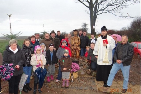 Poświęcenia kapliczki dokonał ks. Krzysztof Tomczak proboszcz naszej parafii pw. Najświętszego Serca Pana Jezusa. W uroczystości wzięli udział aktywni mieszkańcy wsi na czele z panią sołtys Anielą Błaszczyńską oraz zaproszeni przybyli goście: prezes koła łowieckiego Jeleń i jednocześnie leśniczy leśnictwa Rakłowice Janusz Łabuda, pani Iwona Wartke-Czerwińska, główna księgowa Nadleśnictwa Milicz oraz pani dyrektor GCK w Cieszkowie Halina Niedbała i rzeźbiarz postaci Huberta Bernard Izydorczyk