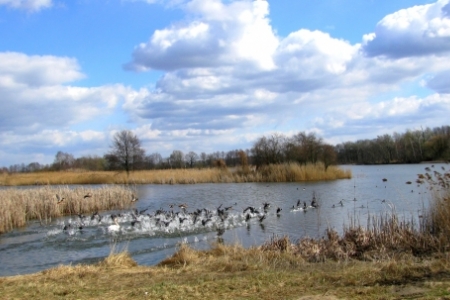 W pobliżu rosną różne gatunki roślin wymienione już wcześniej, tu najwięcej zauważymy tojeści pospolitej, kielisznika zaroślowego, rzepika pospolitego, ostrożenia polnego i trzcinnika piaskowego.Oba stawy to ostoja ptaków wodno-błotnych mimo, że znajdują się już poza rezerwatem. Do niedawna na pobliskich wyspach znajdowała się kolonia lęgowa mewy śmieszki, licząca ogółem do około 2 tysięcy gniazd. W ich towarzystwie gniazdowały kaczki krzyżówki, głowienki, czernice i krakwy a na wodzie perkozy zauszniki. Mewy opuściły wyspy kiedy je zbyt mocno zarosła trzcina, ale nadal gnieżdżą się tu inne gatunki ptaków, w tym wymienione gatunki kaczek oraz kilkanaście par gęgaw.