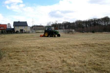 Ponieważ teren ten od dawna nie użytkowany był bardzo zaniedbany i zarośnięty potrzeba było użyć przętu którego nie mieliśmy w swoich zasobach .Tu z pomocą przyszedł nam p.Jarosław Borzymowski, który udostępnił nam kosiarkę bijakową i ciągnik.Pracę wykonał p.Bogusław Karpiński.