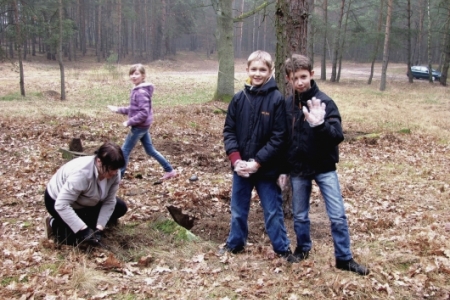 Dzieci z zapałem zabrały się do pracy.Ks.Paweł przywiózł trochę narzędzi i nie szczędząc sił również pomagał w porządkach, tak samo zresztą jak Pani Stasia oraz p. Agnieszka Małańczak, będąca inicjatorem i koordynatorem tego przedsięwzięcia.Na koniec poczęstowaliśmy dzieci słodkościami.