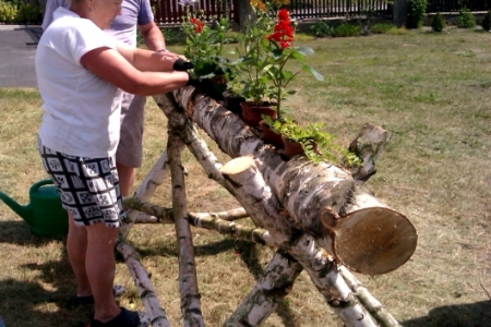 Wykonania tych kwietników podjął się p.Wiesław Karpiński,który przy niezbędnej pomocy syna Dawida je wykonał.Należy dodać,że był również pomysłodawcą tego projektu.