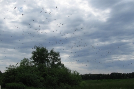 Takie oto widoki możemy zaobserwować na naszych stawach,niczym z filmu Alfreda Hitchcocka "Ptaki".Co chwilę gniazdujące u nas mewy śmieszki podrywają się do lotu,robiąc przy tym straszny rwetes.To jest muzyka dopiero.