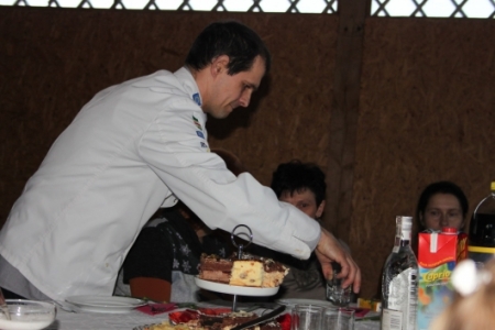 Wszystko przygotowywali sami. Od samego rana w kuchni uwijali się : Paweł , Andrzej, Tomek, Rafał, Krzysiek. Do drużyny troszkę póżniej dołączył również Darek. A przygotowali same pyszności. Czytajcie i zazdrośćcie. Kotlety schabowe z żółtym serem, ananasem i żurawiną – pyszota! Pulpeciki w winie z sosikiem czosnkowo-chrzanowym – mhhhmmm! Udka z kurczaka w ziarnach słonecznika i orzechach laskowych – no niebo w gębie! sałatki – chyba z pięć rodzajów! Półmiski z wędlinami- rewelacja! No i gwóźdź programu – udziec z dzika z kaszą – i tu brakuje słów , żeby opisać jaki był dobry…