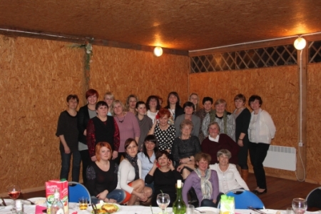 Spotkanie rozpoczęło się o godzinie 17- stej od uroczystego powitania, życzeń i przemowy połączonej z wręczeniem każdej kobiecie pięknego czerwonego goździka . Całusy w pakiecie z kwiatkiem tez się zdarzały. ![]()