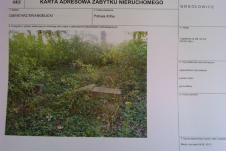W wykazie zabytków znajdującym się w urzędzie Miejskim jako obiekty zabytkowe ujęte są następujące nr nieruchomości : 3, 4, 6,8,9,13,15,24,29,31,32, 36, 36a, 34, 40. Dodatkowo do wykazu wpisany jest cmentarz ewangelicki znajdujący się na pd. od wsi. Cały obszar Gogołowic objęty jest strefą "B" ochrony konserwatorskiej, Strefą "E" ochrony konserwatorskiej ekspozycji, oraz strefą "OW" ochrony archeologicznej.