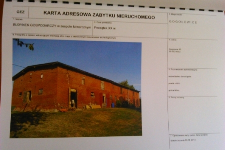 Warto wspomnieć w tym miejscu, że w obrębie zespołu folwarcznego w Gogołowicach znajdował się zabytkowy spichlerz z muru pruskiego z 1800 roku, który niestety spłonął doszczętnie w wyniku podpalenia w roku 2001.