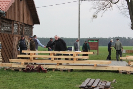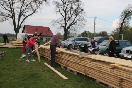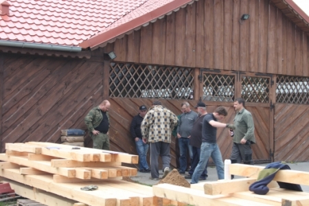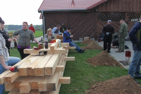 W bardzo miłej atmosferze zabraliśmy się do pracy. Wizytę złożył nam również Pan Roman Żyto- inspektor nadzoru, żeby sprawdzić czy budujemy wiatę, czy nas fantazja nie poniosła i nie majstrujemy czegoś innego.