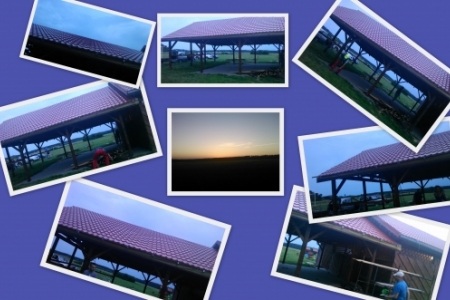 Na dachu naszej wiaty w zeszłym tygodniu pojawiły się pierwsze arkusze blacho dachówki! Yeaaa! Powoli finiszujemy z budową. Każdego dnia kiedy pracujemy na budowie , na zakończenie stajemy w oddaleniu kilku metrów od wiaty( tak, żeby popatrzyć na nią z pewnej odległości i „ogarnąć” całokształt). No i stoimy tak chwilę i podziwiamy…. I cieszymy się , że nam to tak fajnie wyszło.