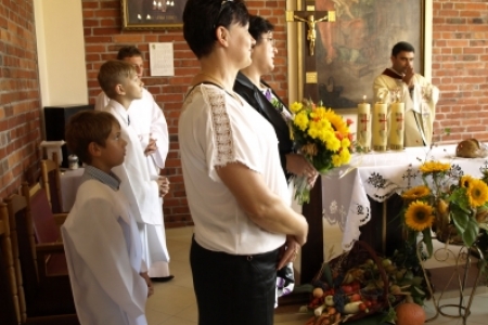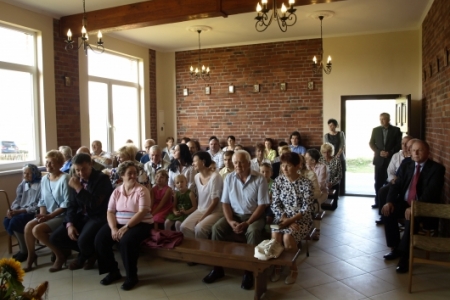 Uroczystości rozpoczęły się o godzinie 16.30 od Mszy Świętej sprawowanej w intencji wszystkich Rolników i mieszkańców wsi. Mszę odprawił Ks. Adrian Kosendiak , który wygłosił piękne kazanie nawiązujące do naszej pracy w kaplicy, nawoływał do jedności wśród mieszkańców i wzajemnego poszanowania . Następnie dokonał poświęcenia kaplicy. Wśród licznie przybyłych mieszkańców i zaproszonych gości można było zauważyć naszych rolników : Rodzinę Kąkolów, Szlachtów, Słabickich, Stopów, Kryściaków,Beniów. Swoją obecnością zaszczycili nas również : Burmistrz Gminy Milicz- Paweł Wybierała, właściciel firmy Drew-Box – Janisław Kaczmarek i delegacja Pań z Godnowej. Te ostatnie na zakończenie mszy wręczyły naszej Pani Sołtys bukiet kwiatów gratulując pięknie odremontowanej kaplicy i życząc powodzenia w dalszym sprawowaniu funkcji.