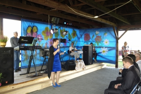 Po uroczystej mszy wszyscy zebrani udali się na plac przy świetlicy wiejskiej , gdzie już czekała orkiestra oraz inni uczestnicy dożynek. Oficjalnego przywitania zaproszonych Rolników , mieszkańców i gości dokonała Nasza Sołtysowa – Ewa Kamińska. Nie kryjąc wzruszenia dziękowała wszystkim Rolnikom - za trud pracy na roli, mieszkańcom – za pomoc przy remoncie kaplicy, Burmistrzowi – za przyznane w ramach inicjatywy lokalnej dotacje i wszystkim, którzy przybyli na uroczystość. Następnie wręczone zostały dożynkowe chlebki upieczone specjalnie na tę okazję przez Państwa Wandę i Jana Procajło. Wręczanie chlebków odbyło się podczas odczytania wiersza mojego skromnego autorstwa, który podobał się mieszkańcom i zaproszonym gościom o czym mogłam przekonać się osobiście – słysząc słowa uznania od osób przybyłych na nasze uroczystości.